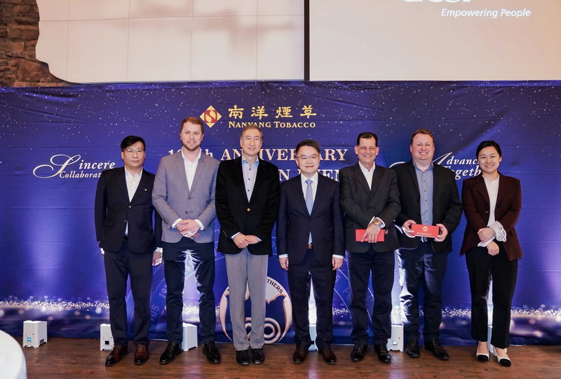 公司董事總經理張耀華、副總經理鄒裕忠帶隊參加展覽會,與來自不同國家與地區的企業領導和代表進行了廣泛且深入的介紹交流與業務洽談。今年恰逢南洋煙草成立120週年,南煙特於展會期間籌辦答謝聚會,以感謝機器設備與煙葉供應等方面的長期合作夥伴。嘉賓共聚一堂,共同分享南煙成立120周年喜悅,感念深厚合作情誼,並聽取南煙新產品與未來發展規劃介紹。